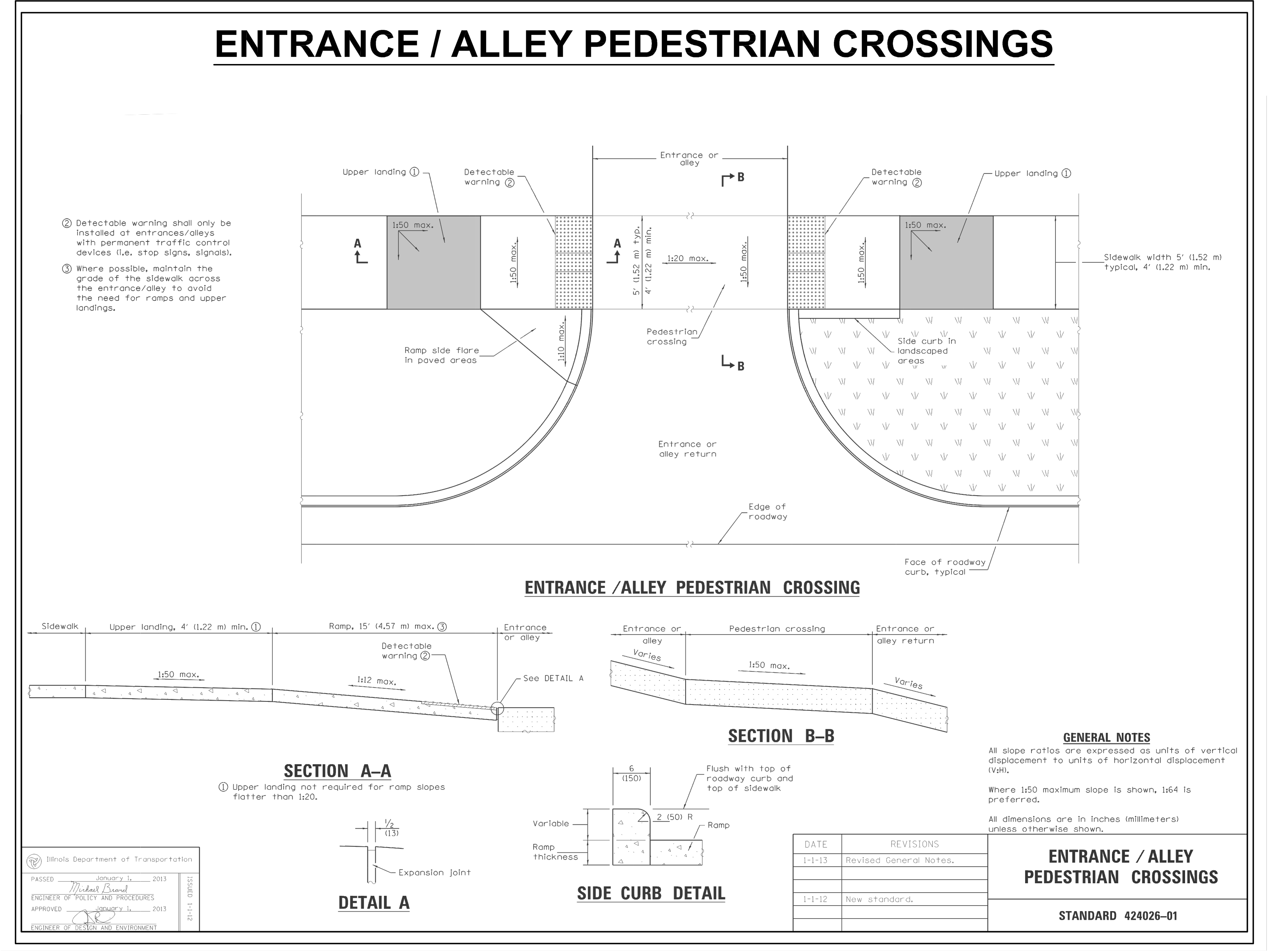 Perpendicular Curb Ramps for Sidewalks - Sheet 1